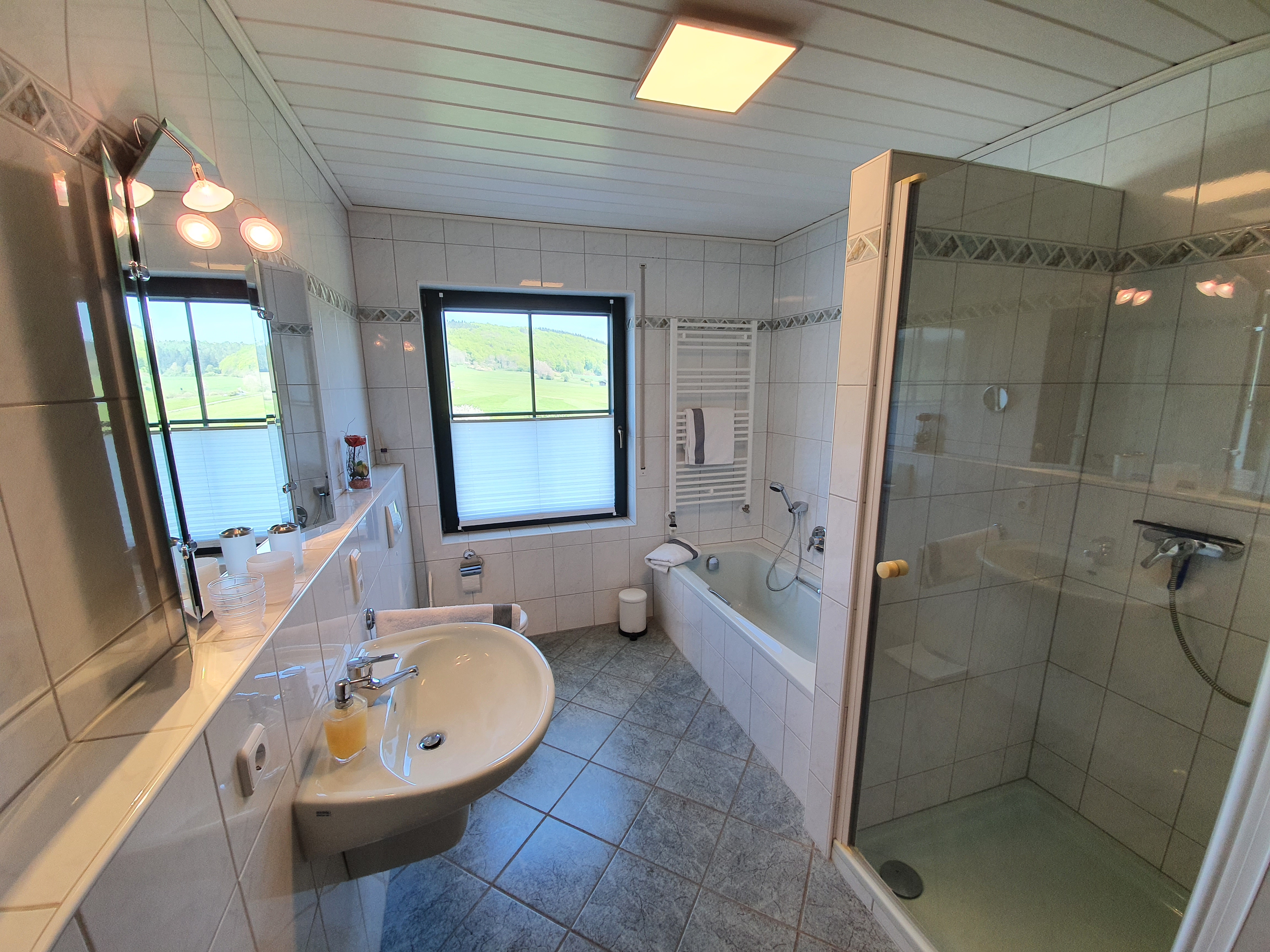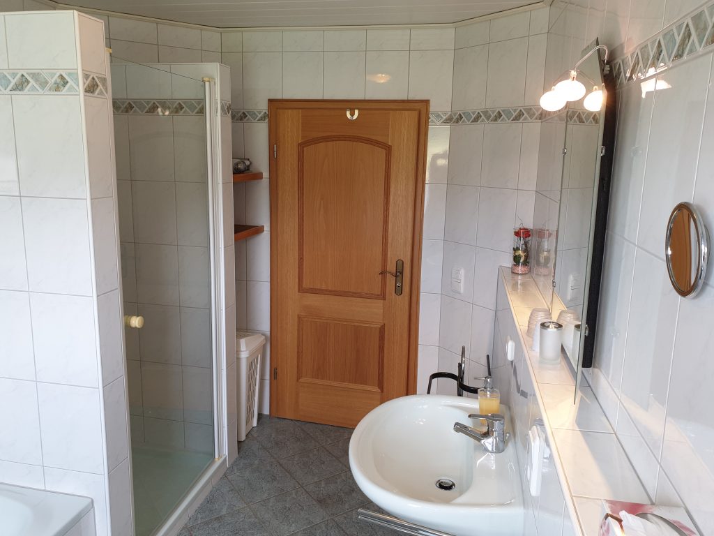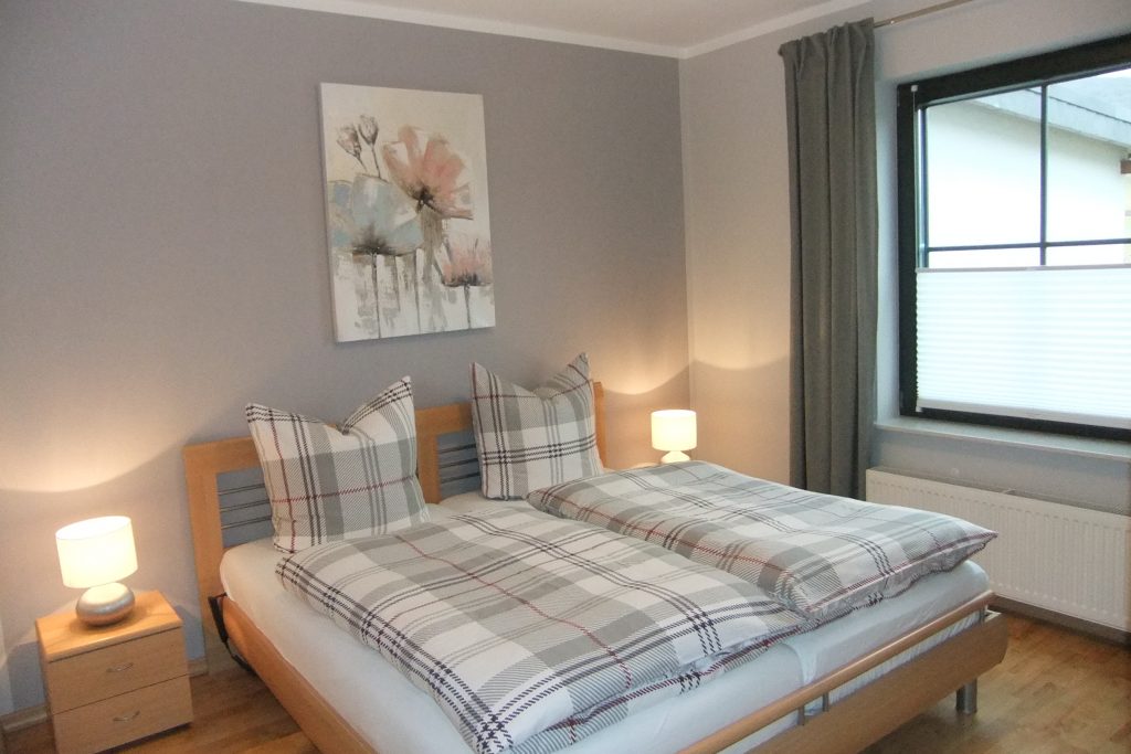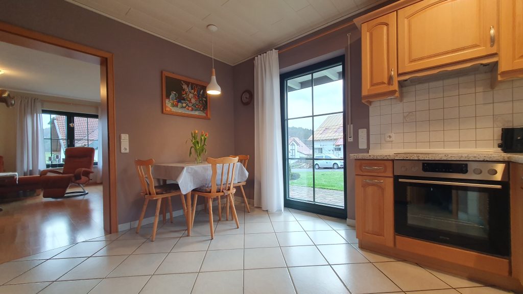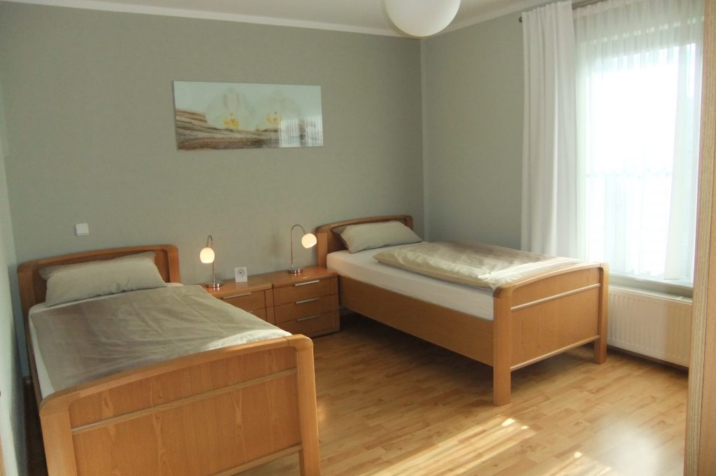 Die Wohnung verfügt über einen separaten Eingang, Flur, Wohnzimmer mit Essbereich im Erker, Kochküche mit Esstisch, Vorratsraum, 1 Doppelschlafzimmer, 1 Schlafzimmer mit 2 Betten (können auch zusammengestellt werden), Badezimmer mit Badewanne, Dusche und WC sowie 2 Terrassen zur alleinigen Benutzung. Das Wohn-Esszimmer sowie die Küche wurden im Januar 2023 neu renoviert.